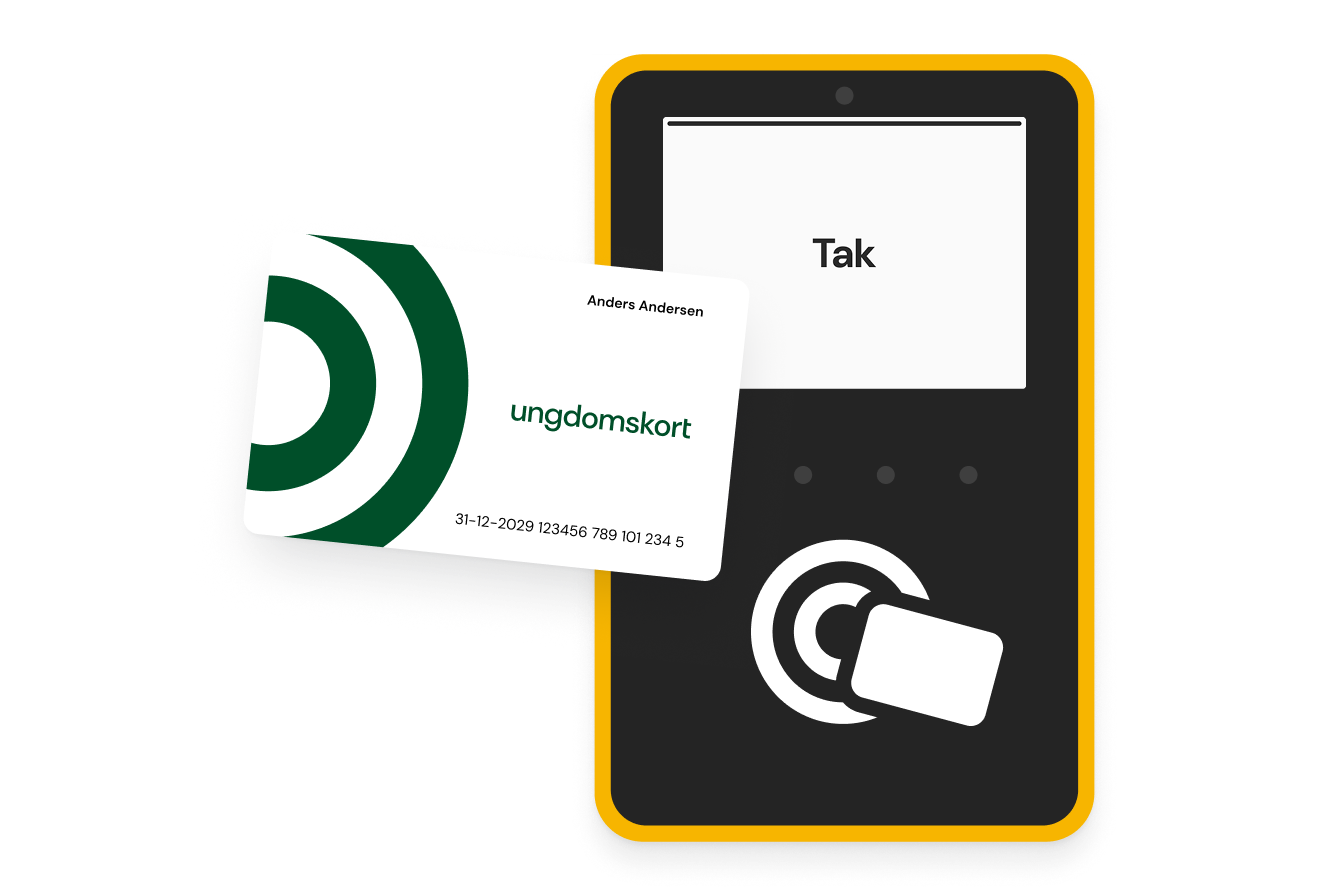 Det nye fysiske Ungdomskort leveres kun i Jylland og på Fyn. Her skal du være opmærksom på, at du med det nye fysiske Ungdomskort skal tappe, hver gang du står på og hver gang du står af. Det gælder også ved skift undervejs, selv hvis turen fortsætter med samme type transportmiddel. Du tapper på de gule Checkpunkter i busser og på perroner.
