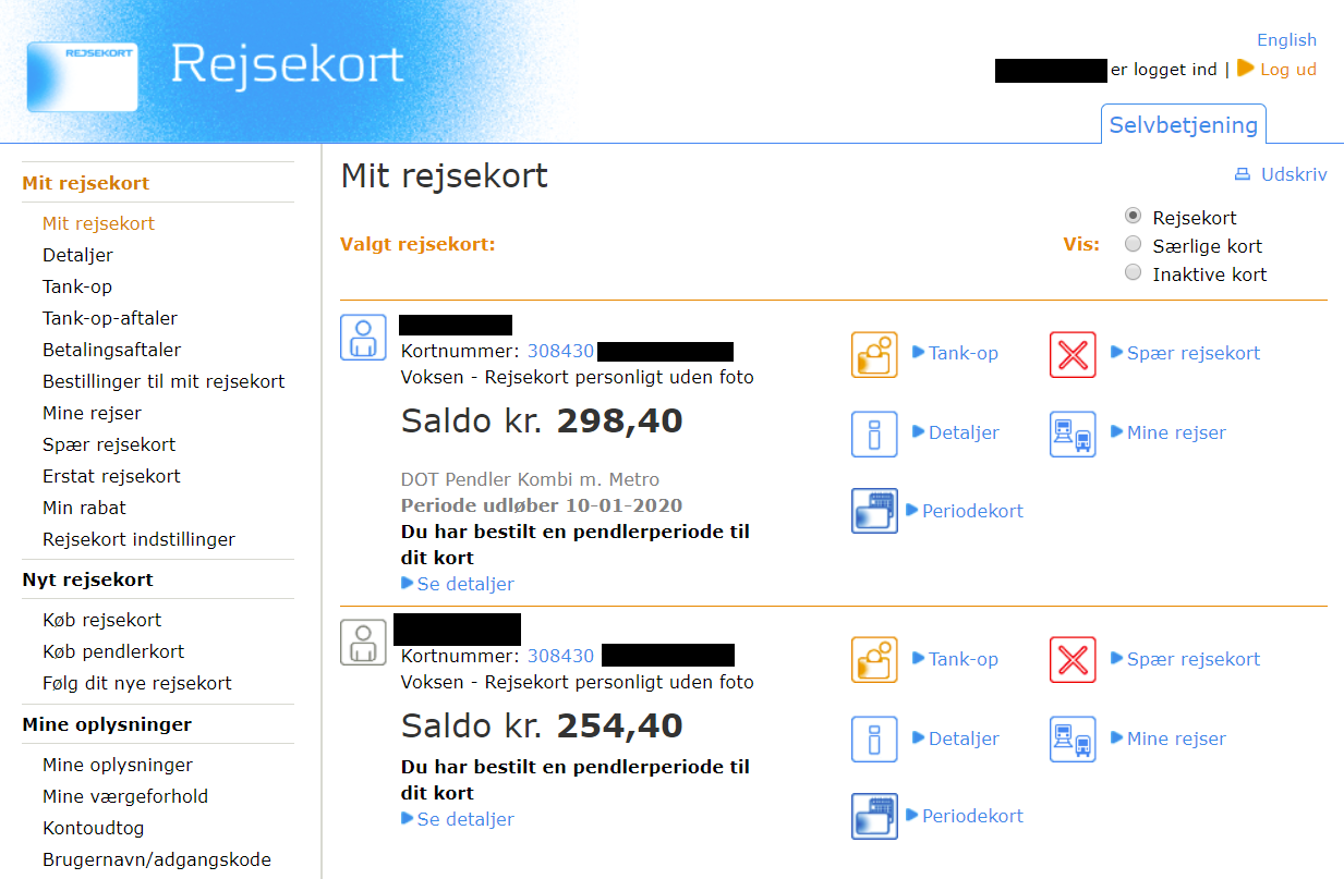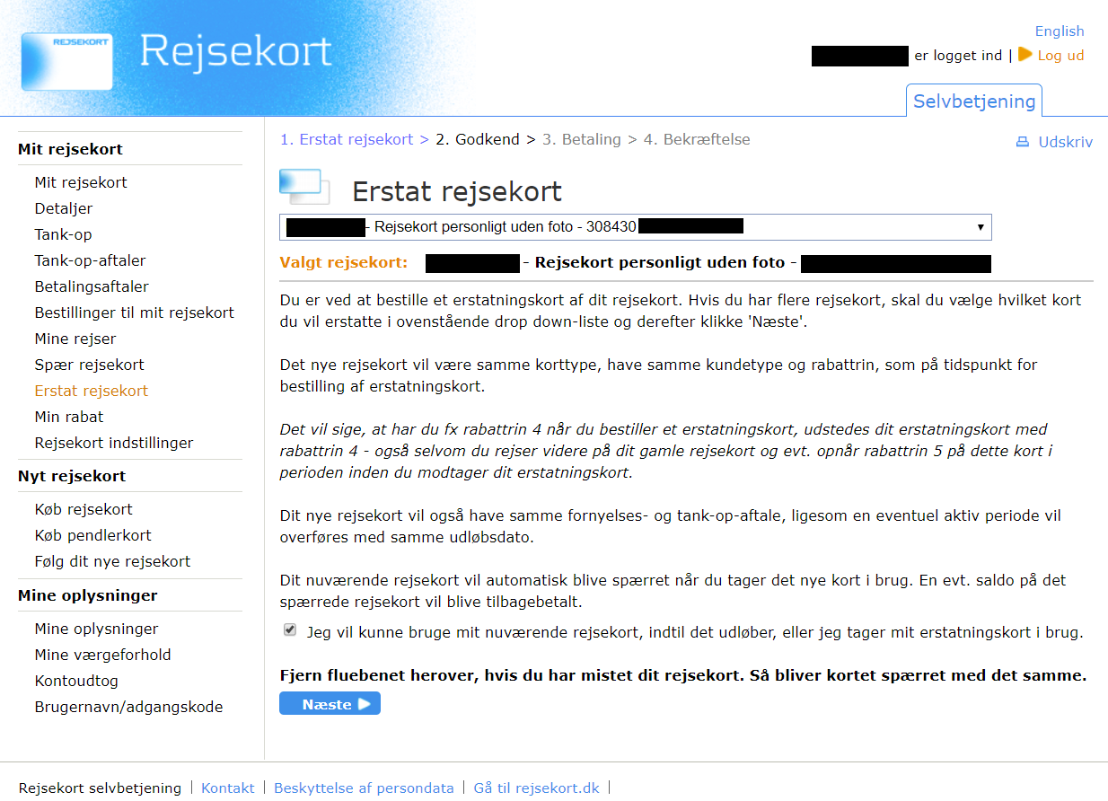 Hvis dit kort er ved at udløbe, skal du tilgå "erstat Rejsekort" i venstre menu.