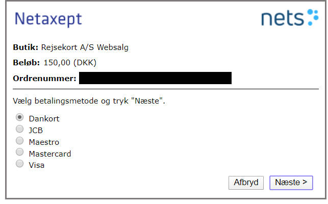 Du skal nu vælge det betalingskort, som du ønsker at betale dit erstatningskort med. Hvis du vælger et eksisterende betalingskort, kan du hoppe videre til punkt 7.