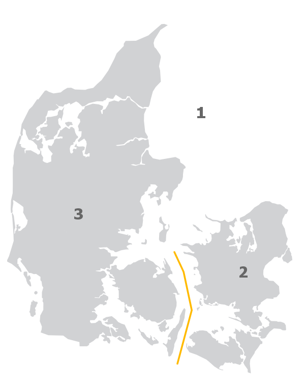 Du optjener mængderabat på én af tre forskellige rabattællere; én på rejser Øst for Storebælt, én på rejser Vest for Storebælt og én på rejser Over Storebælt. Når du fx rejser i Nordjylland, bruges tælleren 'Vest for Storebælt' til at fastsætte dit rabattrin.